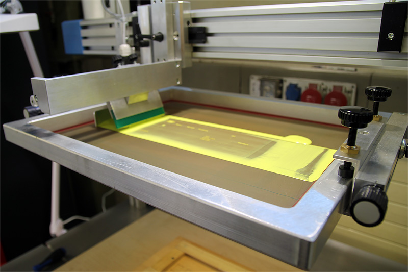 Im Siebdruckverfahren werden viele verschiedene flache Materialen bedruckt: Metalle, Kunststoffe, Holz, Glas